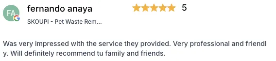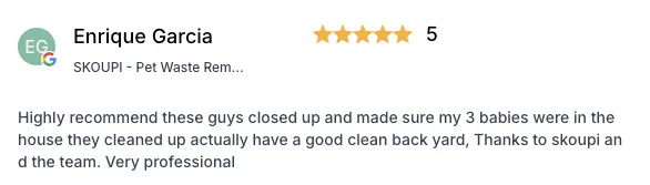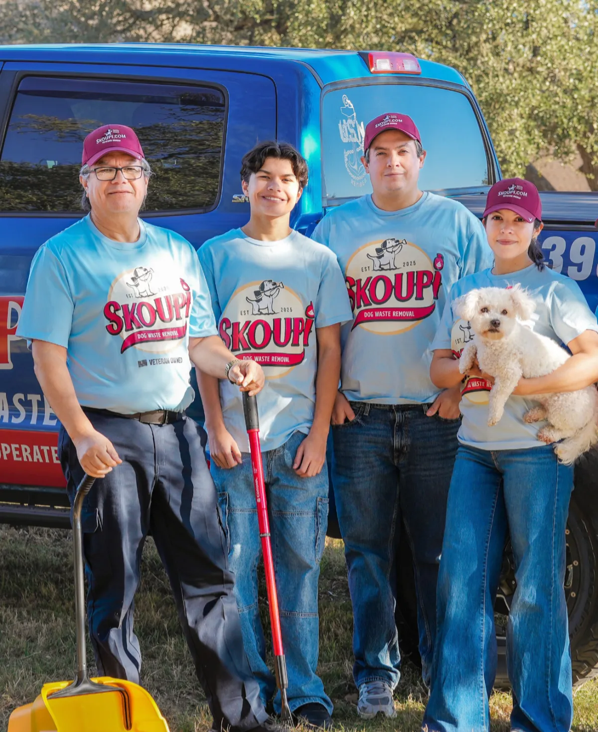 Skoupi is a veteran-owned pet waste removal company proudly serving San Antonio and surrounding areas. Our uniformed, background-checked technicians provide reliable, professional service so you can enjoy a clean yard without the hassle.